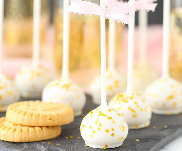 Elegance with a hint of adorable, champagne cookie pops make the perfect addition to summer entertaining occasions. Made with crumbled Shortbread Rounds, white chocolate and festive gold stars, this hands-free dessert allows guests to sip their bubbly and eat it, too!