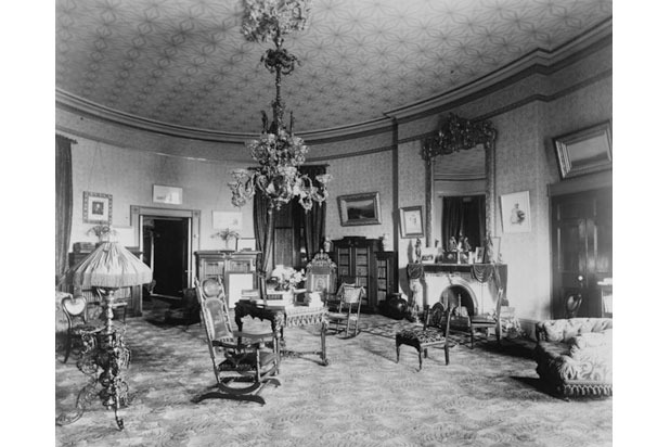 President Benjamin Harrison and his family introduced the first indoor White House Christmas tree in the upstairs oval room, the family's private parlor. Because the White House did not yet have electrical power, the family decorated the pine branches with candles.