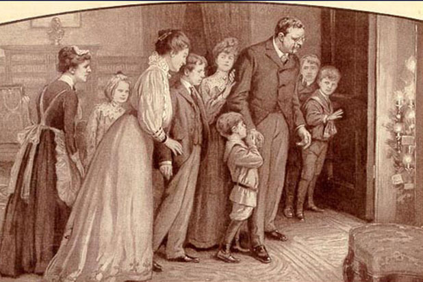 President Theodore Roosevelt and his wife hosted a carnival at the White House for more than 500 children. They served a favorite of many past presidents — ice cream molded into the shape of Santa Claus. President Roosevelt did not approve of chopping down evergreens, so he banned them from the White House. However, his son smuggled one in anyways and hid it in the sewing closet.