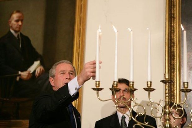 Twenty-two years after the first lighting of the National Menorah, President Bush hosted the first Hanukkah party, with an 100-year old menorah on loan from the Jewish Museum in New York City. And with more than 600 guests attending his last party while in office, it was no small affair.