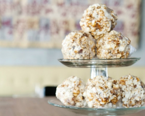 Get the party popping with these festive, salty-sweet treats. We love his use of bacon and sweet syrup for an all-around rich flavor in his Popcorn Balls recipe.
