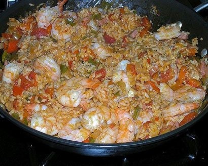"The Cajun jambalaya ($15.95) tasted as if some dry hot-spice-mix had been randomly sprinkled over chunks of flavorless chicken and shrimp."–From a newspaper review of the Cheesecake Factory, a place you should never go looking for jambalaya.