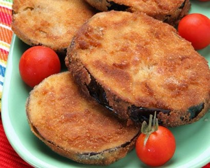 It's Fried Eggplant Day. There seems to be wide agreement as to what constitutes perfect fried eggplant: a greaseless, dark-brown exterior with a breadcrumb crust, and a light interior. This can be had by cutting the eggplant either into disks or sticks, but the sticks (perhaps because of their resemblance to French fries) are more popular, especially when they're cut very long, as they can be if you utilize the entire length of the eggplant.