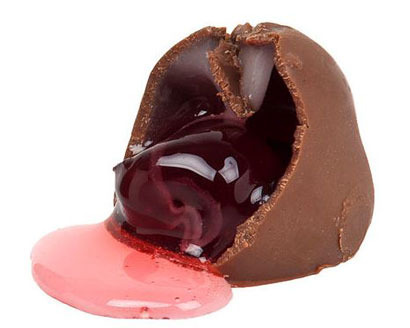 Today is National Chocolate-Covered Cherry Day. That makes me realize how long it's been since I had one of those, filled with some kind of white, sugary creme and a juicy liquid around a maraschino cherry. They were the last word in candy when I was a kid. I never questioned that until a girlfriend pointed out something I knew but ignored: they're sweet enough to cause near-pain in the eating. And if the chocolate shell cracked, the runny insides would flow out into a sticky mess, and let the cherry dry out. My mother, who recognized nothing as too sweet, loved and expected boxes of chocolate-covered cherries for all holidays.