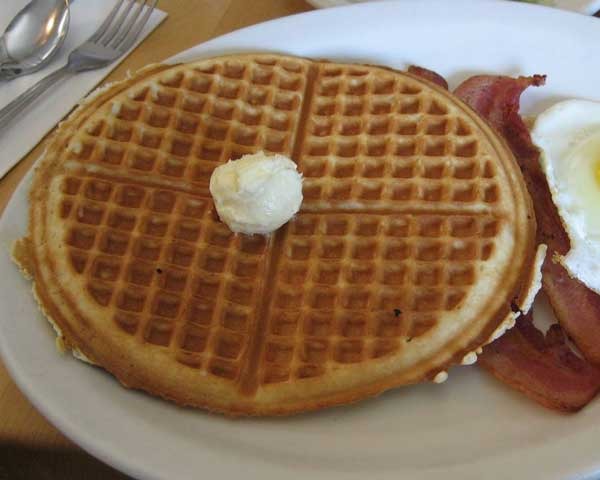 Today is International Waffle Day. Waffles seem special because they're not often made at home. Waffles are associated with restaurants, with the added touches of which add nice touches like whipped cream, fresh fruit, and real maple syrup, all of which are a lot of trouble in your own kitchen. Restaurants also keep their waffle irons on all the time. That gets around the First-Waffle Problem. For reasons nobody can understand, the first waffle you make is much worse than all the ones that come after.