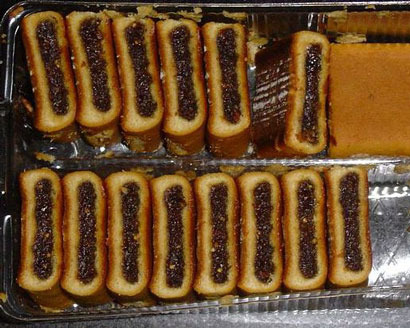 This is National Fig Newton Day. How they're made is more interesting than how they taste. The inventor, Joshua Josephson, used a rectangular-tipped funnel inside of another, larger one. The thick fig jam filling went into the funnel in the middle, the dough went into the one on the outside, and the whole thing was extruded in one operation. Then it was baked, cut, and named after the town of Newton, Massachusetts. I used to love them when I was a kid. Maybe they've made them sweeter, or maybe I don't like sweet stuff as much as I once did.