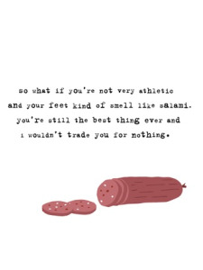 This Etsy shop makes this card in varieties for every type of food lover: bangers to my mash, syrup to my pancakes, sour cream to my latkes, wine to my cheese, spaghetti to my meatballs, toast to my jam, strawberries to my cream, carrots to my peas, fish to my chips, and more.