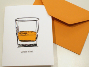 For the scotch enthusiast, this "You're Neat" card is simple, elegant, and full of promise — aka the inside is blank (perfect for you to fill in with your own sentiment). To purchase, contact Etsy shop owner Paperkeet.