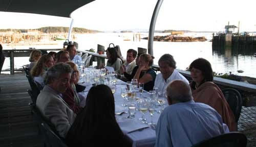 Ingrid Bengis — owner of Ingrid Bengis Seafood and also author of the 1973 feminist classic Combat in the Erogenous Zone: Writings on Love, Hate, and Sex — opened the dinner with a brief presentation of ICEC highlights, from Jean-George Vongerichten and Thomas Keller dinners in collaboration with Deer Isle Stonington Elementary School to Devin Finigan's mid-January 2014 Winterfest lunch of mussel and lobster tart that packed 200 people into the school cafeteria. ICEC, in its five-year history, has taken the local elementary school from a 100 percent heat-to-serve system to cooking from scratch, and local students from lunchbox PB & J to crispy kale and heirloom pig, not forgetting roasted broccoli and beets or polenta. Arguably among the planet's most gourmet grade schools, DISES now has a chef, Liz Barbato, who is a graduate of the Culinary Institute of America, and more and more families are signing up for the school lunch program.