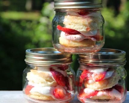 I recently did a TV segment on The Weather Channel making strawberry shortcakes. While filming, I wanted to feed the crew, so I made a few dozen individual portions in jars, since they would be easy for them to carry around the studio.