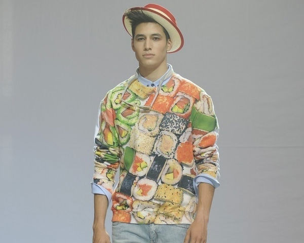 The spring 2014 Frankie Morello menswear line recently showcased a series of shorts, suits, baseball caps, jackets, sweaters, and T-shirts all screen-printed with — you guessed it — pictures of food. The line includes items such as a T-shirt with donut and Starbucks cup graphics, a sweater emblazoned with images of sushi and another with a reproduction of Giuseppe Arcimboldo's famous food portraits, and a sweatshirt with a print of Napoleon on a horse clutching McDonald's french fries.