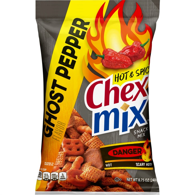 The blog for General Mills, maker of Chex Mix, describes Ghost Pepper Chex Mis this way: "Excite your taste buds and shock your senses with a new hot and spicy flavor of Chex Mix, featuring one of the hottest peppers on the planet."