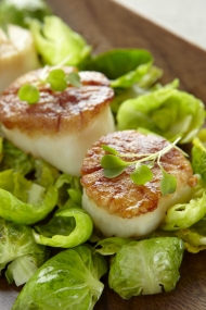Pan-Seared Scallops with a Simple Beurre Blanc and Sautéed Brussels Sprouts Leaves