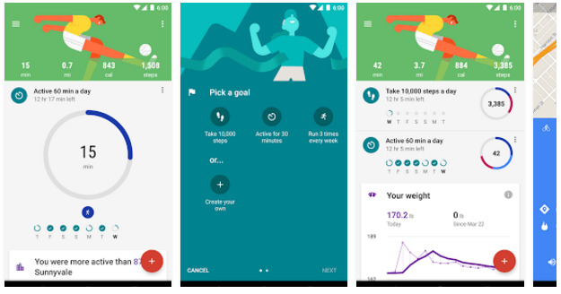 Though only available via the Android app store, Google Fit uses a fun interface to encourage users to log food intake, post fitness goals, and view progress. As you walk, jog, or bike throughout the day, Google Fit tracks distance, pace, and calories burnt. Sometimes visualizing all the progress we make helps motivate us to keep going.