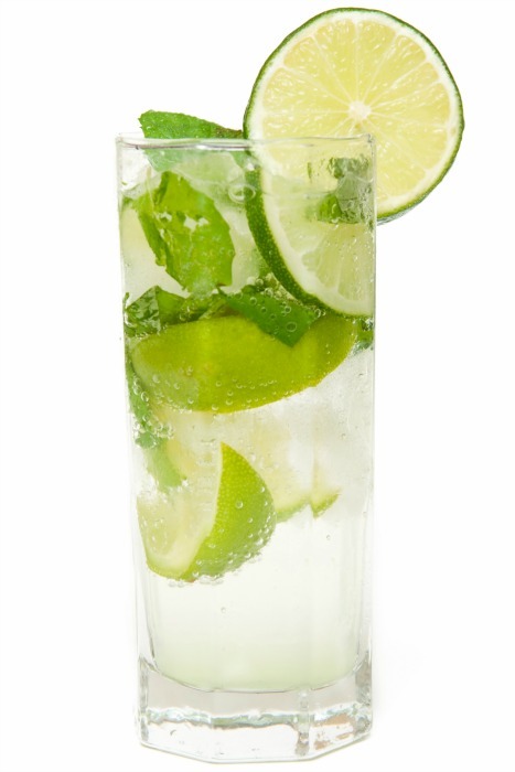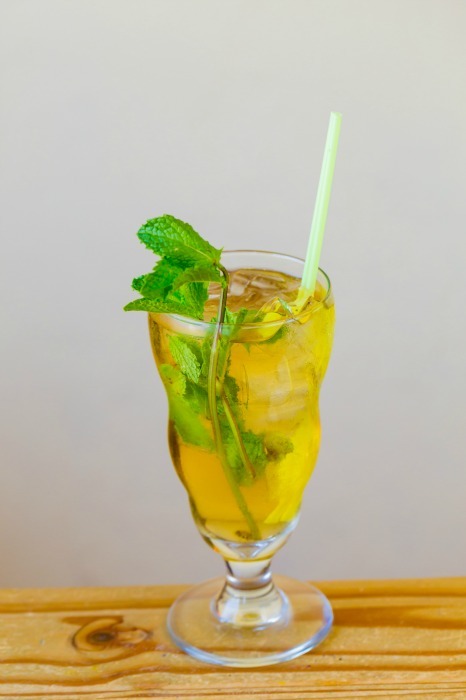 This cocktail is only 140 calories and uses iced mint green tea for an added refresher. Garnish with a lime wedge and mint sprig to show that healthy drink recipes can still look fancy and taste delicious.