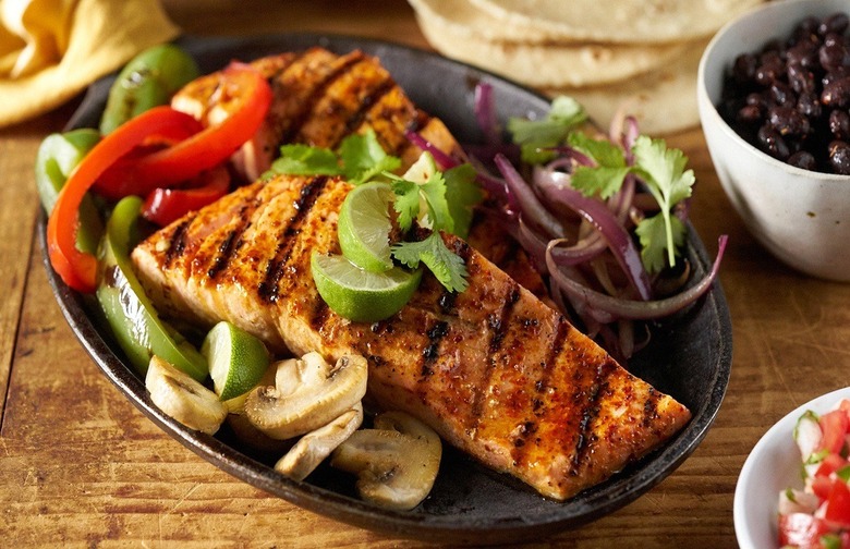 Mexican night just got a whole lot healthier. Salmon is the ideal replacement for people trying to cut down on red meat, because it is lower in cholesterol, yet higher in omega-3 fatty acids — essential fats that the body can't produce on its own but are crucial in regulating hormones, blood clotting, and genetic functions. Omega-3 fatty acids have also been found to reduce the risk of heart disease, certain cancers, and stroke.