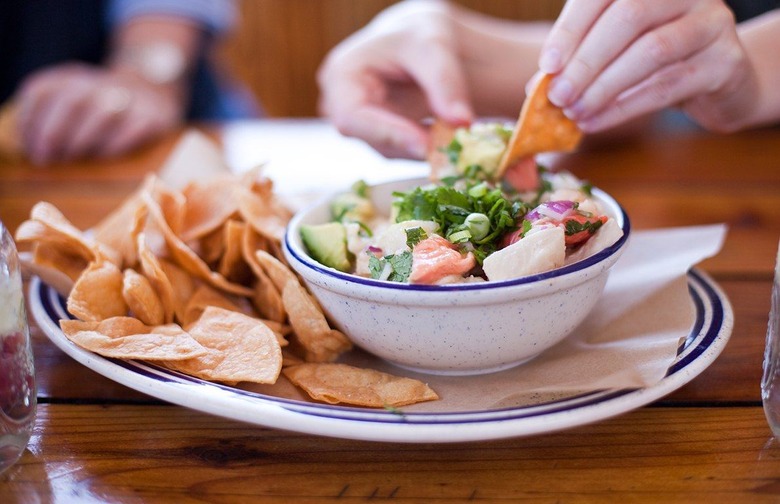 Ceviche is a traditional South American dish made with fresh fish cured in light citrus juice marinade. It's simple and bright, but if you use chiles and herbs, the ceviche becomes more complex. This recipe pairs refreshing cucumber with fresh salmon and bird's eye chile making for an intense flavor combination.