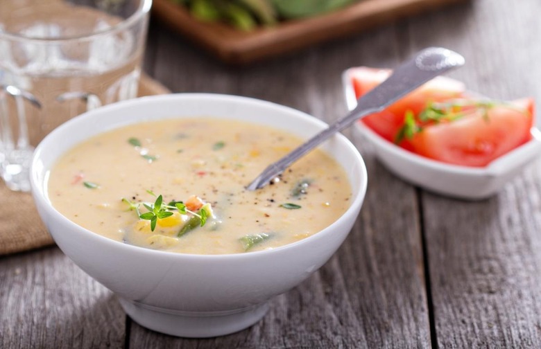 Panera Bread doesn't curate their menu to a child's palates: The chain offers kid-sized versions of all their classic soups and some of their salads. Their vegetarian summer corn chowder with roasted corn, red potatoes, sweet cream, poblano peppers, and cilantro brings a lot of sophisticated flavor for only 210 calories. A kid's Caesar salad and squeezable yogurt puts this balanced meal at well under 500 calories.