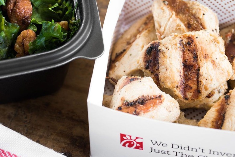Despite their controversies, everyone can agree that Chick-fil-A doesn't play around when it comes to chicken. The chain had the foresight to offer a grilled chicken nugget option — the only grilled nugget available in the fast-food restaurant circuit. A four-piece grilled nuggets kid's meal with a fruit cup is a modest 145 calories, and only three grams of total fat.