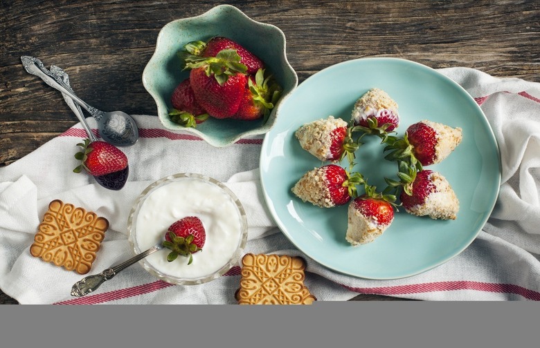 This recipe is super easy, and it produces some great results. Greek yogurt is the perfect coating for these strawberries because it's thick and it doesn't slip off. This healthy treat can be made Sunday night used in lunches throughout the week.