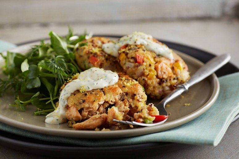 Skipping the burger bun makes these salmon cakes even healthier. Salmon is an incredible superfood that's high in omega-3 and omega-6 fatty acids, vitamin D, and protein. Top these flaky cakes with a sauce of fresh dill, lemon, and yogurt to add some extra tang.