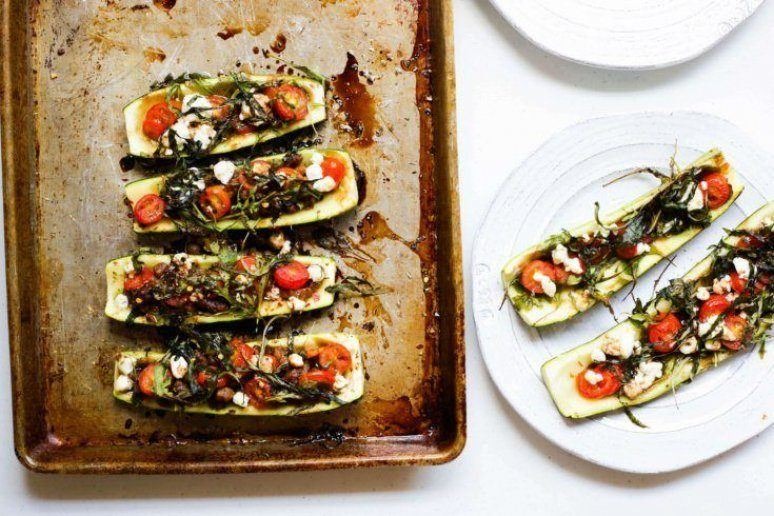 For a lighter take on dinner, try these healthy zucchini pizza boats. Fresh basil, Roma tomatoes, and goat cheese replicate all of those classic Italian flavors but avoid the extra carbohydrates found in pizza dough.