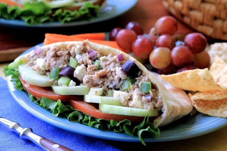 Sometimes you just don't want to turn on the oven, wash a pan, or fuss over a long and complicated recipe. For those nights, this is the dish for you. Simply mix in canned tuna with celery, bell pepper, olives, feta cheese, and yogurt, and stuff those pitas. Boom! A healthy, tasty dinner made in a matter of minutes.