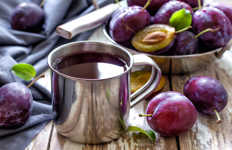 Prune juice comes from prunes, which of course are dried plums. Whichever form of this member of the Prunus genus you choose to enjoy in the morning, know that its benefits include energy without an undesired, quick blood-sugar spike.