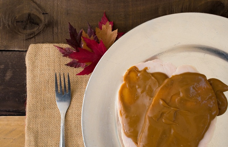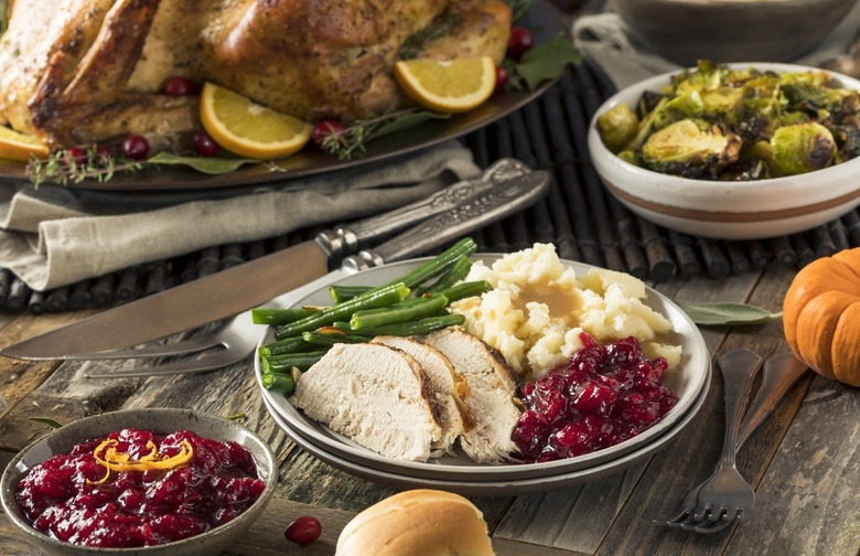 "Stuffing is nothing more than a pile of croutons moistened with fat and loaded with sodium — double this number if it was cooked inside the bird, says Rene Ficek, registered dietitian and lead nutrition expert at Seattle Sutton's Healthy Eating. "Stuffing acts as sponge, soaking up all the butter or turkey fat it encounters. This is why the nutrition fact panels on the stuffing package are deceiving; they don't reflect the finished product with the soaked-up fat. Stick with roasted potatoes instead and save yourself the calorie equivalent of a third-pound of lean turkey! Add sage to your roasted potatoes to develop the same delicious flavor as the stuffing."