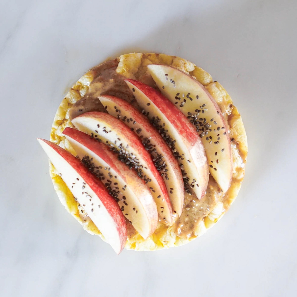 - One large SkinnyPop Maple Brown Sugar Popcorn Cake, or a large rice cake with a drizzle of maple syrup