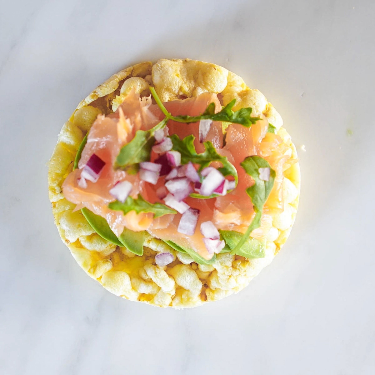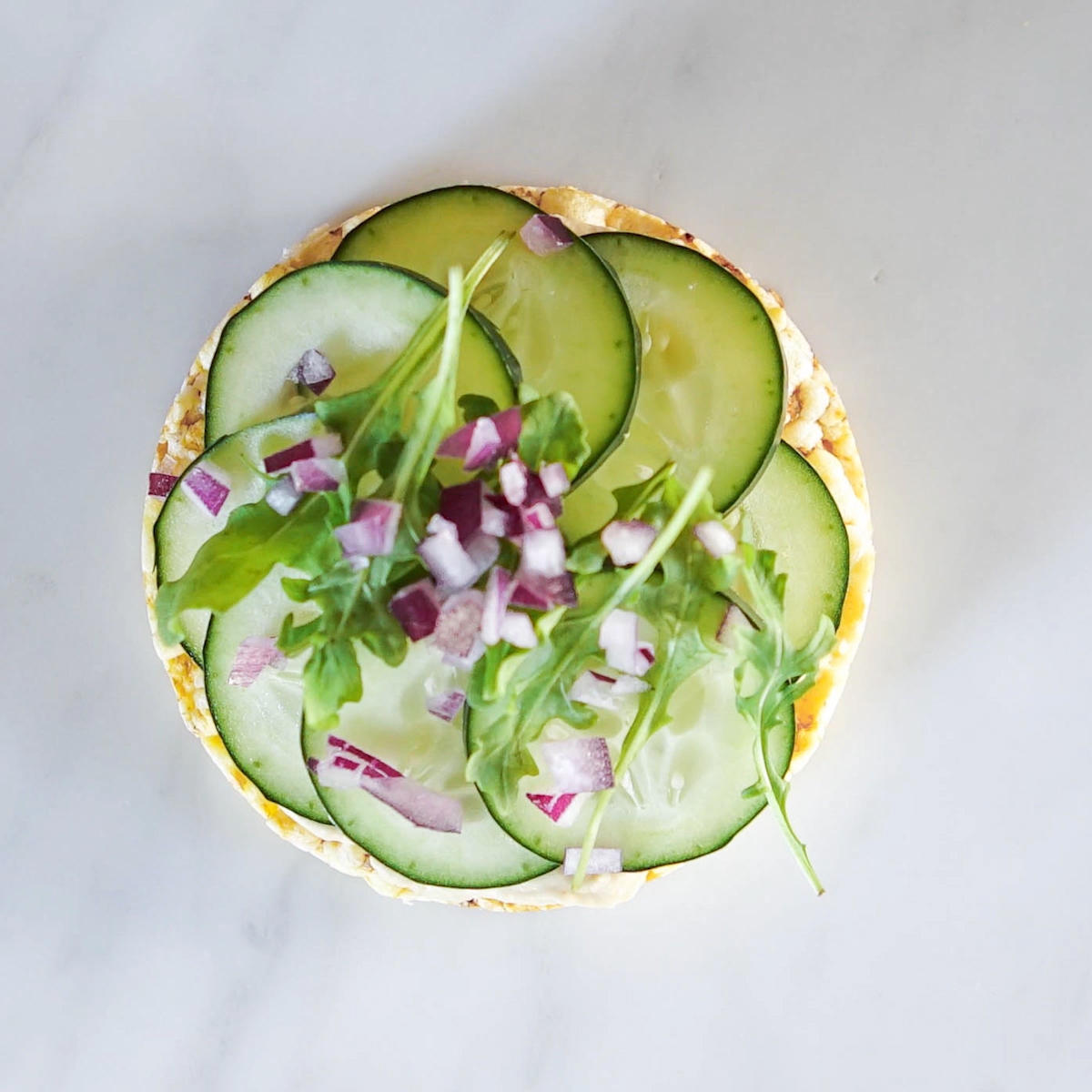- One large white cheddar rice cake, or a SkinnyPop White Cheddar Popcorn Cake