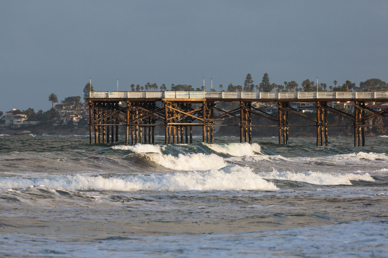 When swimming, keep at least 100 feet away from any pier or jetty. Natural rip currents form around these structures and can be extremely dangerous.
