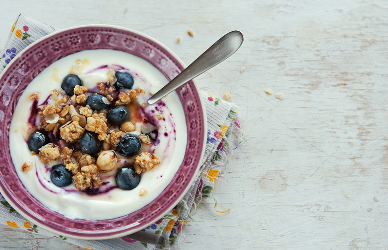 Skyr, essentially the Greek yogurt of Iceland, is insanely rich in protein. One container of Siggi's plain, non-fat skyr contains 80 calories comprised of five grams of carbs and 15 grams of protein. Skyr is thicker than Greek yogurt, making it a bit more filling. Sprinkling some cinnamon on a small portion of oats and throwing them in the toaster for a little while will give them a slight crunch factor, and drizzling one tablespoon of honey (about 64 calories) on top will help cure any sweets cravings you may be having. Consider using a tablespoon of bee pollen instead of honey if you have a problem portioning out viscous liquids like we do (one tablespoon of honey usually turns to two, and sometimes two turns into three, at least for us).