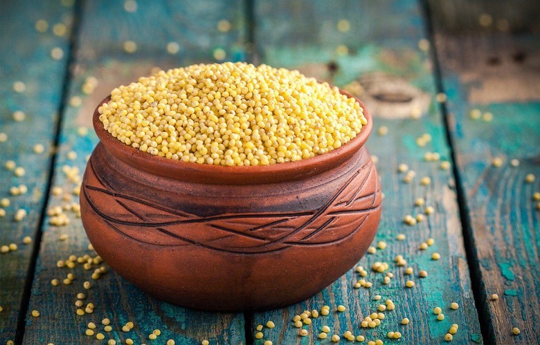 Millet is a popular component of Southeast Asian and Middle Eastern cuisine because of its short crop cycle and its ability to withstand arid conditions. Millet, technically a seed, is starting to grow in popularity here in the United States because of its health benefits and versatility. The small seed contains a complete nutritional profile of copper, phosphorus, and manganese and can be used as a stuffing, porridge, or in place of another grain. Try it in cakes, breads, and even pizza crusts.