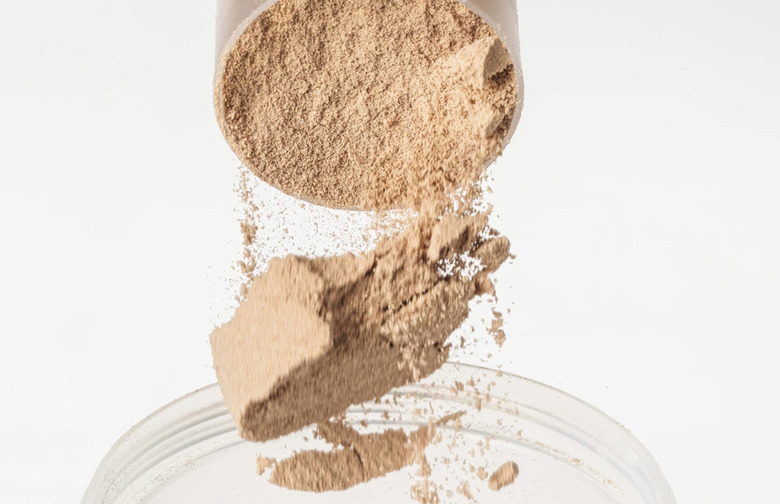If you're able to get that protein in without adding water, we commend you. We have a feeling, though, that trying to mix together the combination of your healthy fat choice and protein powder may turn into an arm workout. Add one-quarter cup of water and try stirring again. If your mixture is still too thick, continue to add one-quarter cup of water until it reaches a consistency you're comfortable with. Luckily for you, water is as healthy as it gets.