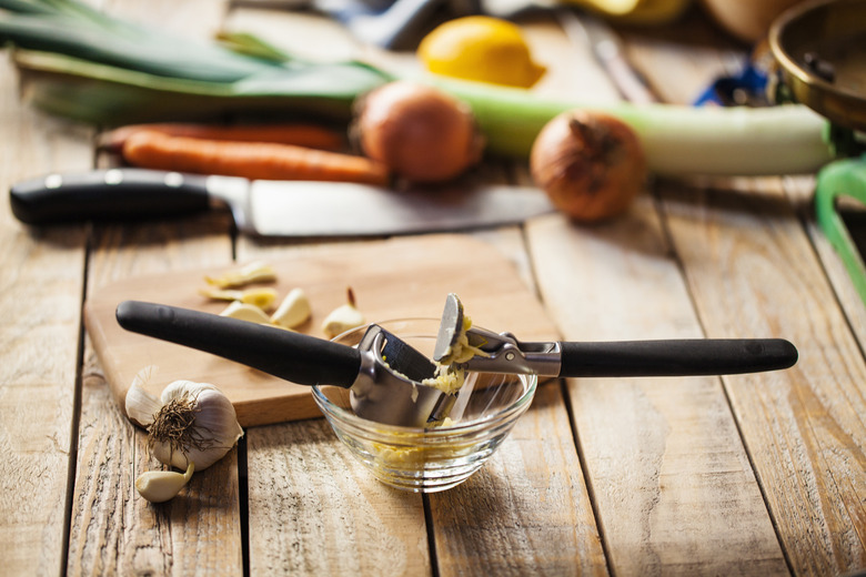 This is another option for people who fumble trying to mince their own garlic with a knife. A chef wouldn't be caught dead using one — but who are you kidding? You're no Gordon Ramsay. Mincing garlic is hard, and if it takes a garlic press to get you to cook with it, so be it.