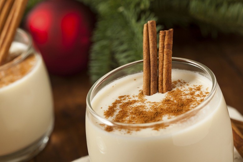 The holiday season allows you to not only eat copious amounts of fat and calories, but to drink them as well. The ingredients in eggnog are similar to a milkshake and include whipped eggs, cream, milk, sugar, and if you're over the age of 21, alcohol. Four ounces of the conventional, store-bought stuff contains 170 calories (half of them from fat), and more than 70 milligrams of cholesterol.