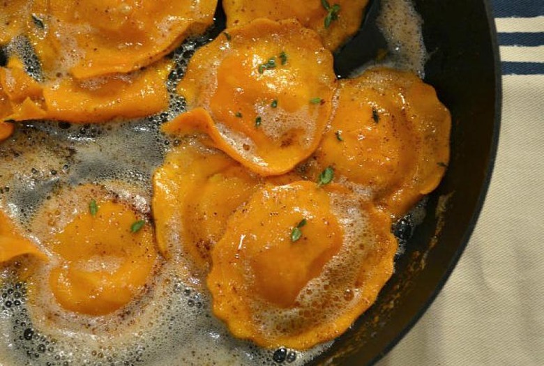 You'd never guess it after getting a taste, but brown butter sauce is one of the simplest sauces to whip up at home. Simply sauté some butter in a pan with spices and you're set — a simple process that lets the true star of the recipe, butternut squash, shine through every pillow-y pasta bite.