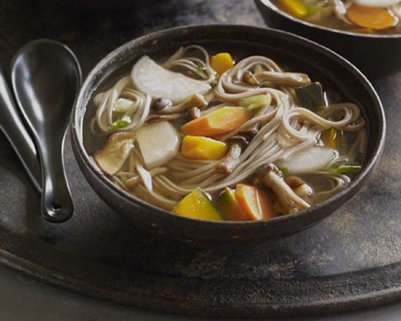 Soba Noodles in Mushroom Broth With Taro and Kabocha Squash