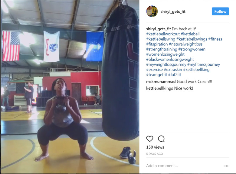 "My current exercise routine consists of a variety of kettlebell workouts. This is the only thing that I do," Shiryl told The Daily Meal. "I work with a certified kettlebell instructor and he trains me three to four times per week for about 30 minutes to an hour."