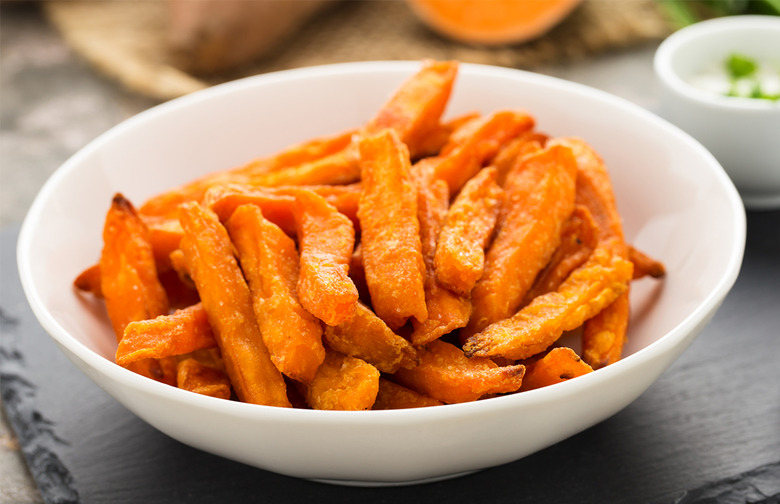 They're known for being the "healthier" potato — but regular potatoes are actually pretty healthy, too! However, there is one thing white potatoes are missing. They lack in beta-carotene, a vitamin that stimulates the scalp to produce oils that keep hair bright and shiny. The more sweet potatoes you eat, the less dry, brittle hair you're likely to have.