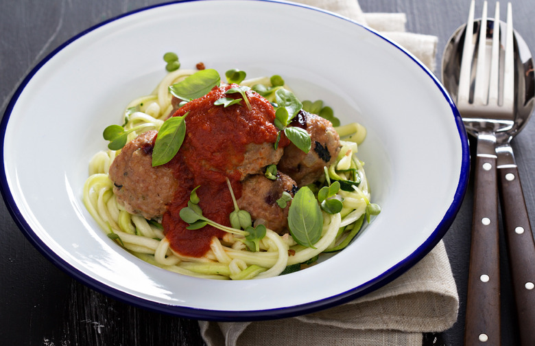Traditional pasta may leave you feeling sluggish. Replace it with a vegetable and enjoy it with cheese-stuffed meatballs. Use one fork to increase the romantic vibes.