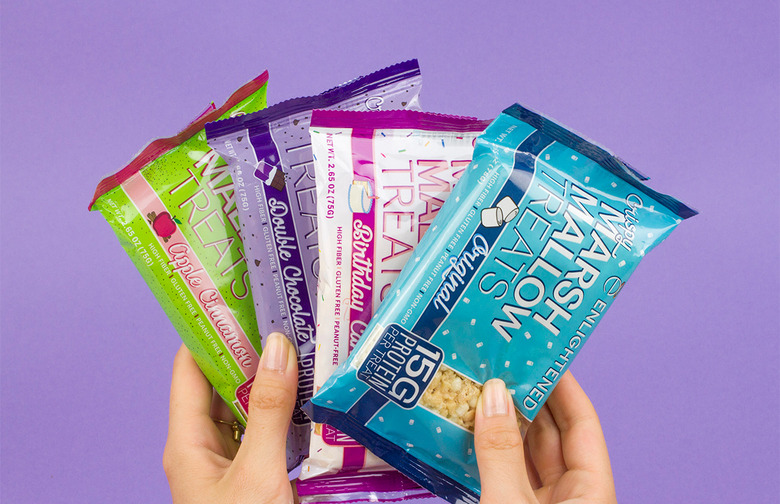 Enlightened, the same company that's been blessing our freezers with healthy ice cream and our pantries with bean snacks, has kicked things up a notch with healthy marshmallow treats. After tasting these protein-packed goodies, you'll never crave Rice Krispie Treats again. There's Original, Birthday Cake, Apple Cinnamon, and Double Chocolate — so all your sweet flavor needs are being met with this product. Fifteen grams of protein per bar, nine grams of sugar — that's less sugar than a tiny cup of yogurt!