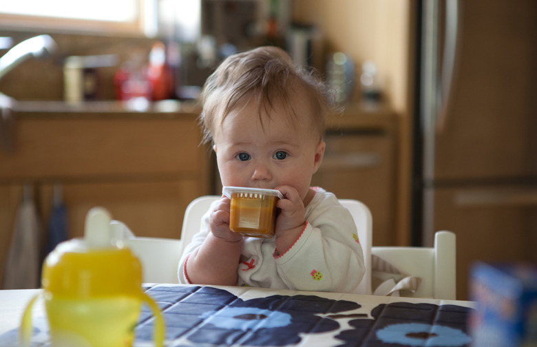 "Feed them things they can manage themselves, like a baby food pouch," Greene said. "Pouches are a great transition food because babies can pick them up and feed themselves — and unique ingredient combinations can help them learn to love new flavors. You can also try taking something hard and grate it to help introduce them to different textures, like grated apple and grated carrot, which is small enough that they can pick it up and grab it with their fingers, but not large enough to be a choking hazard."