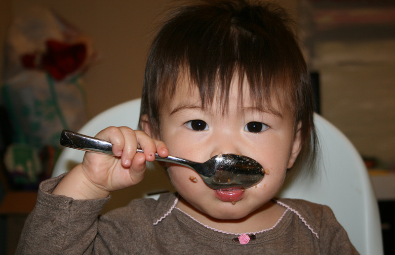 "Hand your baby a spoon so they have one to control while you slip a spoonful of food in their mouth," Greene said. "Sometimes that will do the trick."