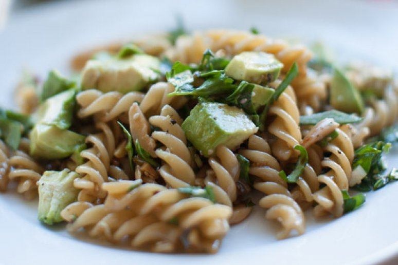 Traditional pasta salads are drenched in mayonnaise or ranch dressing, but if coated with a light vinaigrette and loaded with vegetables, pasta salads can be the perfect lunch. Mix in avocado, spinach, and fresh herbs, and try to maintain a one-to-one ratio of vegetables to pasta.