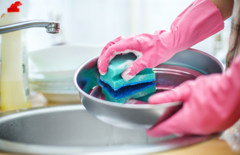 Okay, with bacteria levels this high, sponges should come with a toxicity warning. The average kitchen sponge is 200,000 times more infested than the surface of your toilet bowl. That level of contamination is unfathomable, and even more upsetting once you realize you've been scrubbing that all over your clean cutlery. Gross.