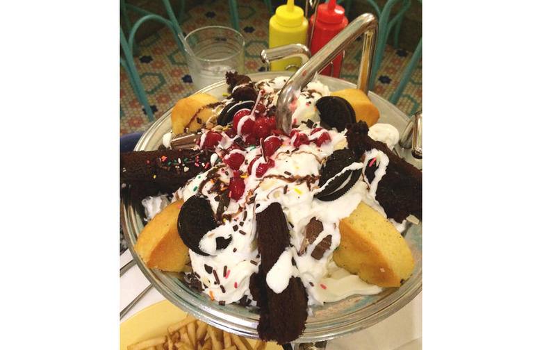 Talk about an epic dessert. This menu item made headlines with its insane portion size and wacky combination of sweets and treats.