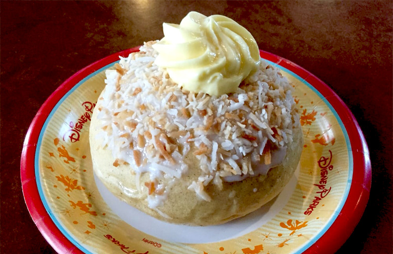 School bread is essentially a sweet bread roll stuffed to the brim with vanilla pudding or custard, then doused with sweet icing and toasted coconut flakes. While those who have eaten the bread call it "not too sweet", we're skeptical of this review — the fat and sugar content is insane. Each one has over 35 grams of sugar, which is around the same amount as an entire rich bar of chocolate.