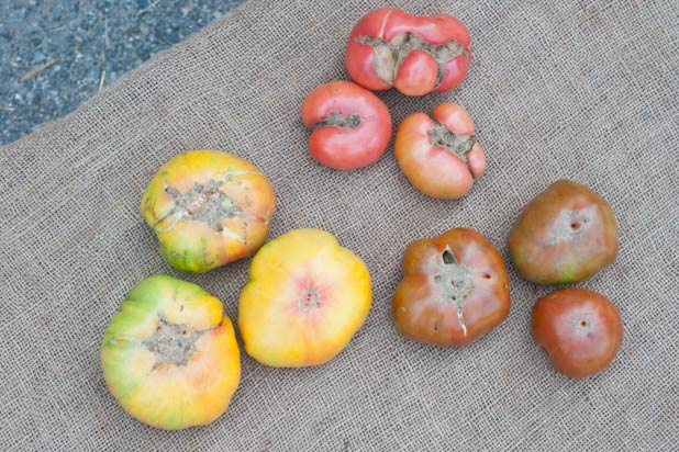 Some heirlooms' virtues are less about their history and more about their looks, like the Green Zebra, which has stripes that resemble those found on the exotic animal, or the Pink Brandywine, which is so beautifully and vibrantly, well, pink. These stories and their physical characteristics are how Haynes was able to distinguish one out of a group of 30 sitting in a box. You may think that one is a Ponderosa, but if you look at it from eye level you'll see that its pointy bottom gives it away (and makes it hard to stand it upright).